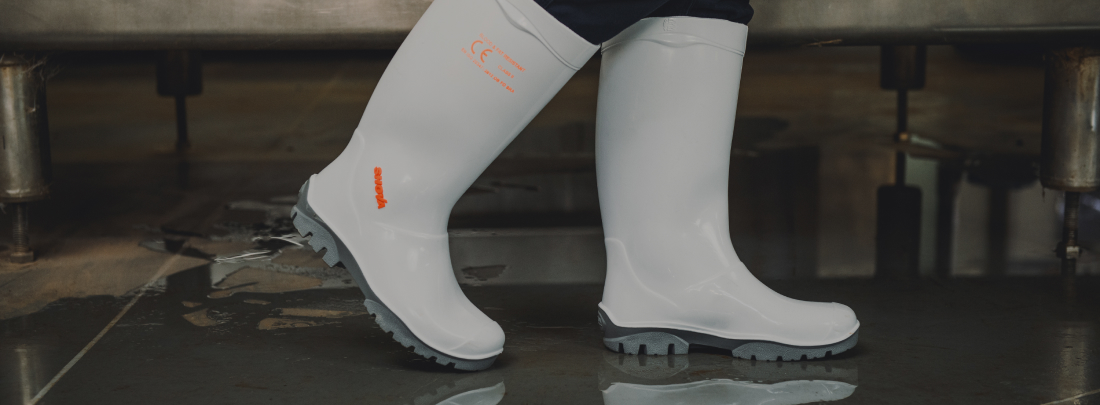 A range of general purpose, unisex, knee length gumboots in two colours, and a heavy-duty mining gumboot with safety toe protection
