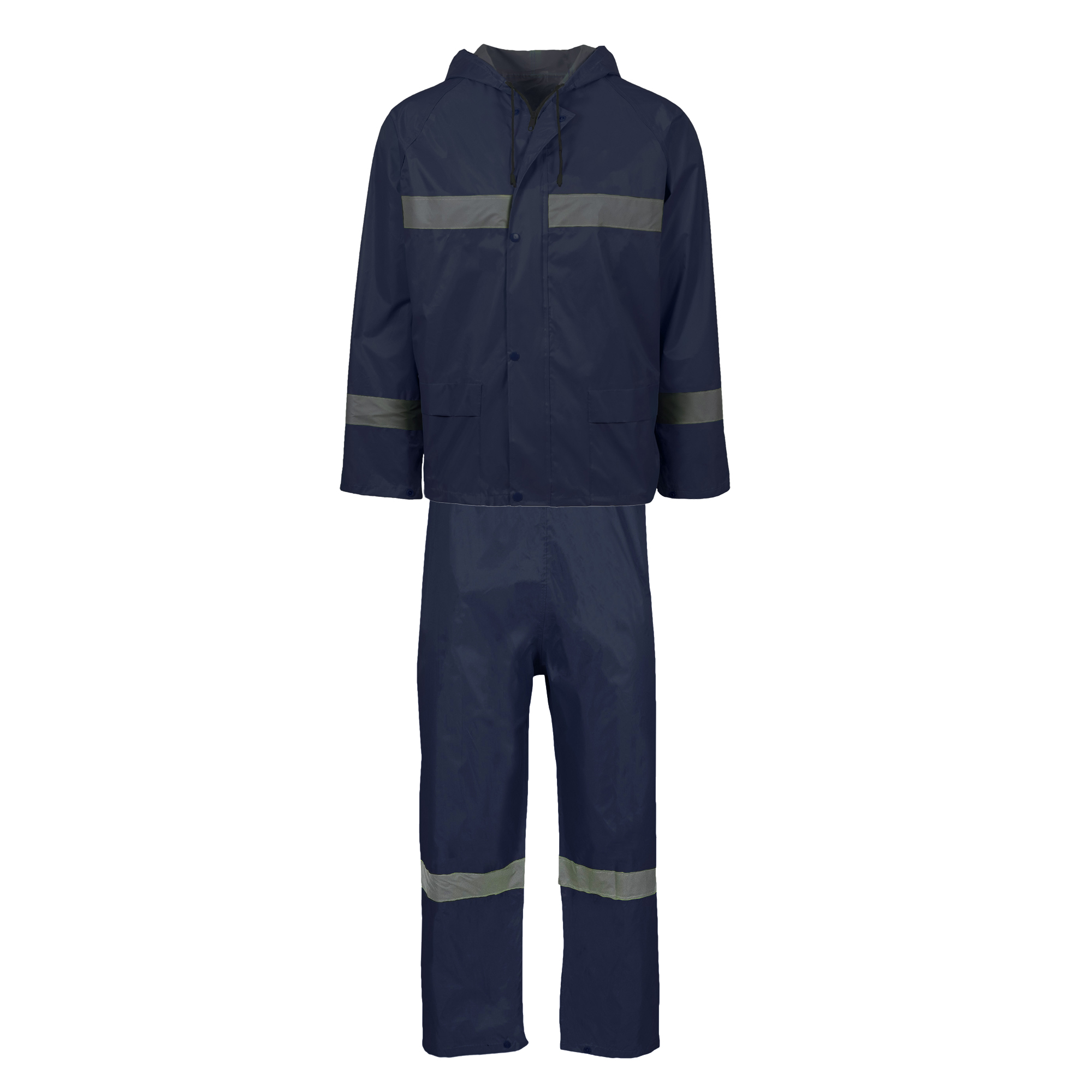 The Hi-Viz blue rubberised rain suit is a high-quality 100% waterproof polyester/PVC rain suit with a nylon mesh lining, fully taped seams and a 110gsm inner fill. The Rain suit features 50mm wide silver reflective strips sewn into the jacket and trousers and is available in a range of sizes from small to 4XL. A PVC drawstring bag is included for easy storage. The rain suit is also available in navy, orange and yellow.